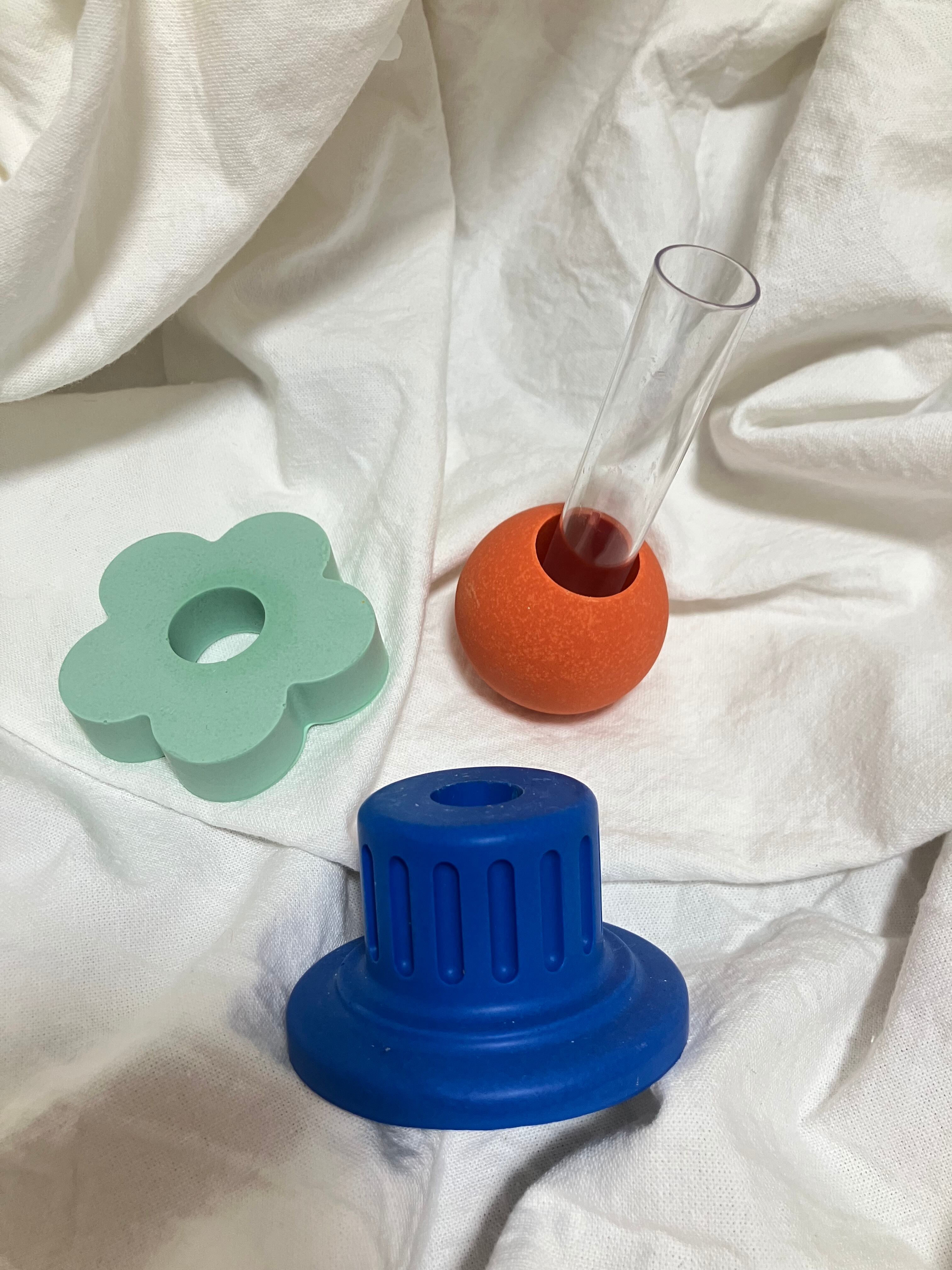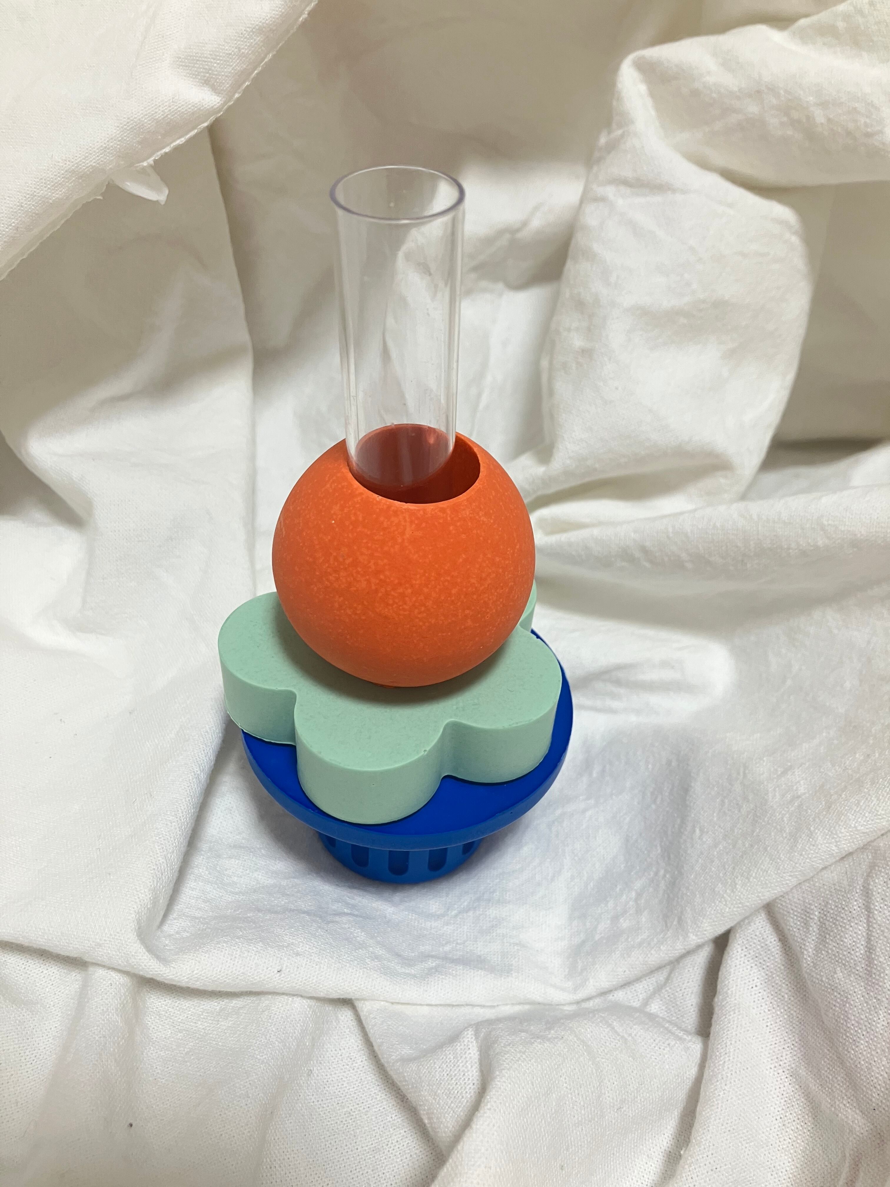 ジェスモナイトという水性樹脂製の積み木のように積み重ねて使うフラワーベースです。