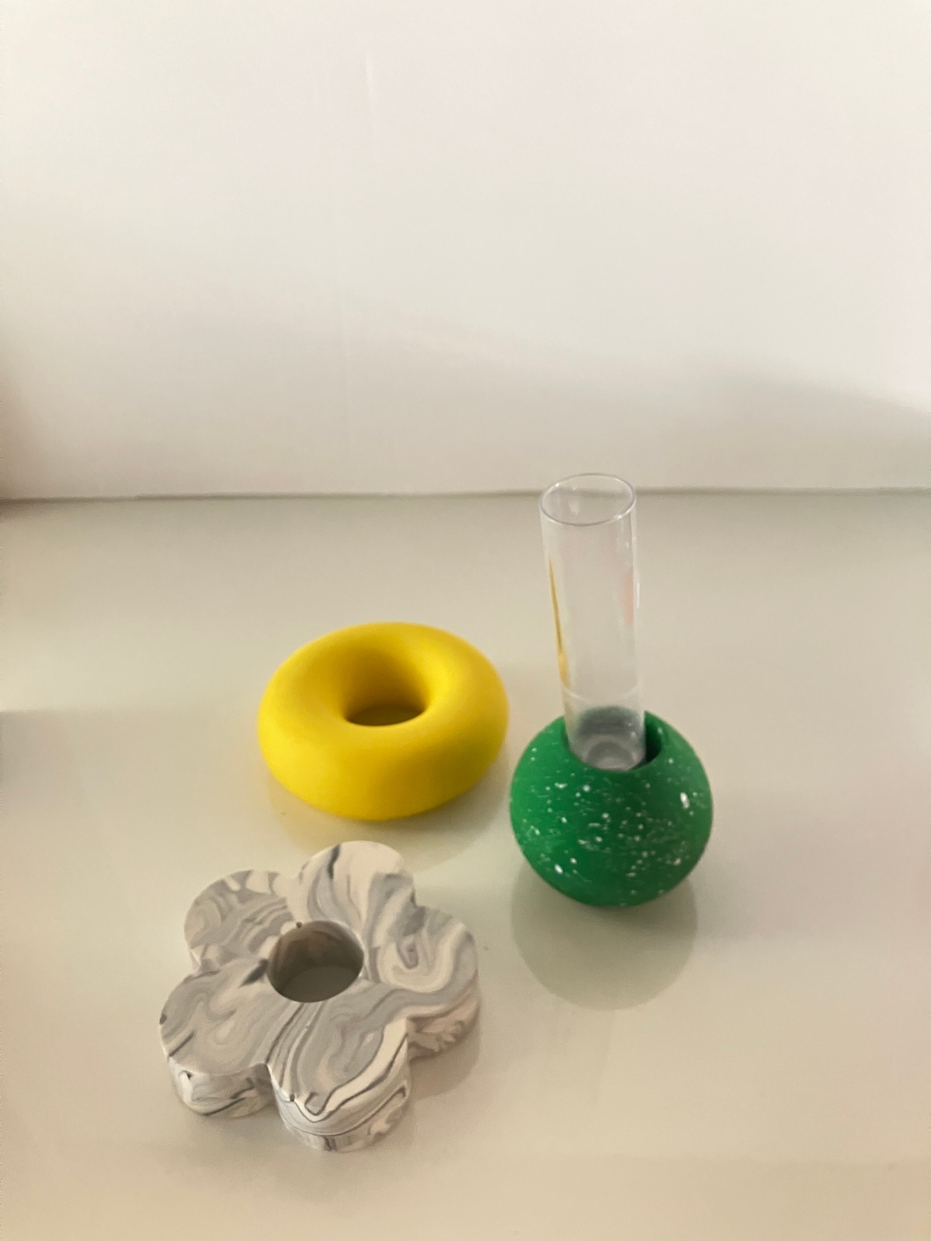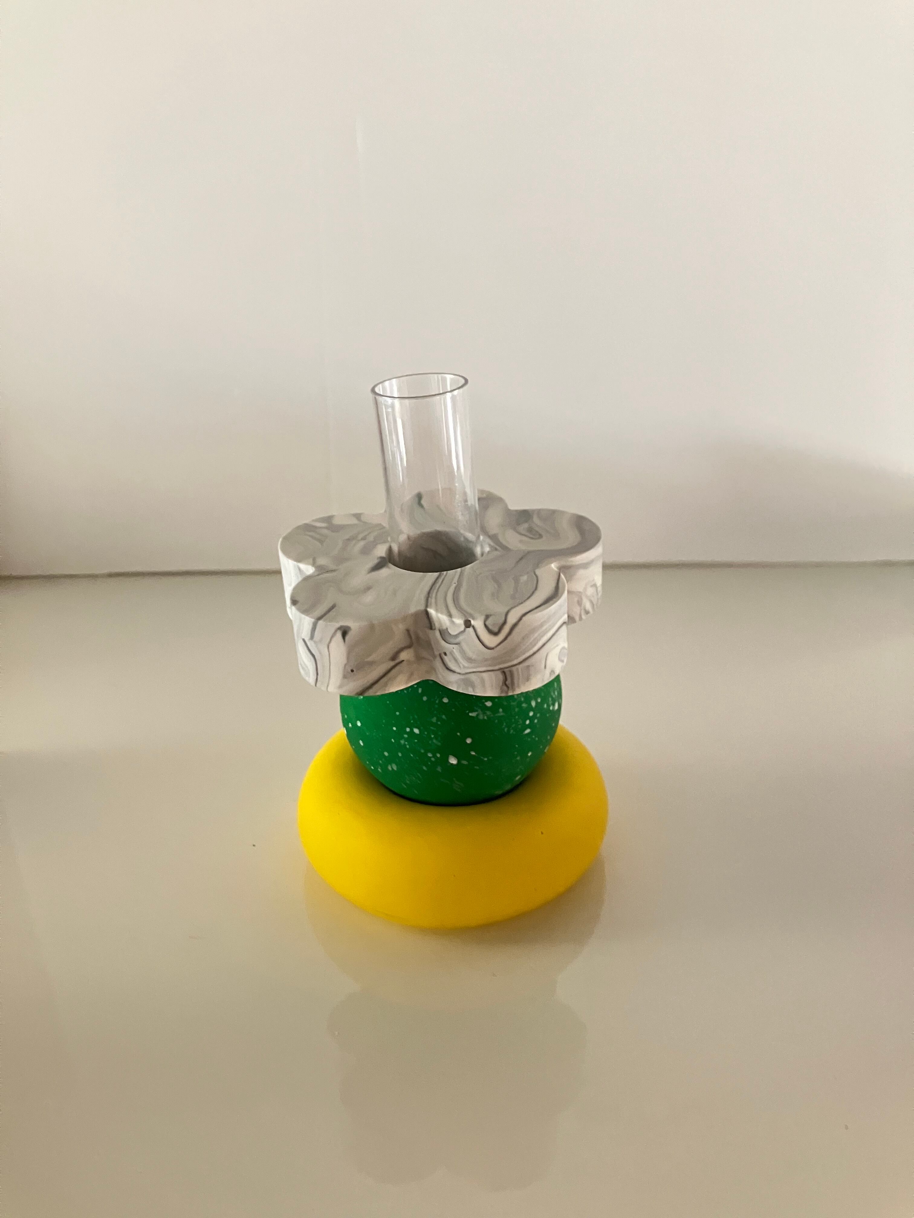 ジェスモナイトという水性樹脂製の積み木のように積み重ねて使うフラワーベースです。