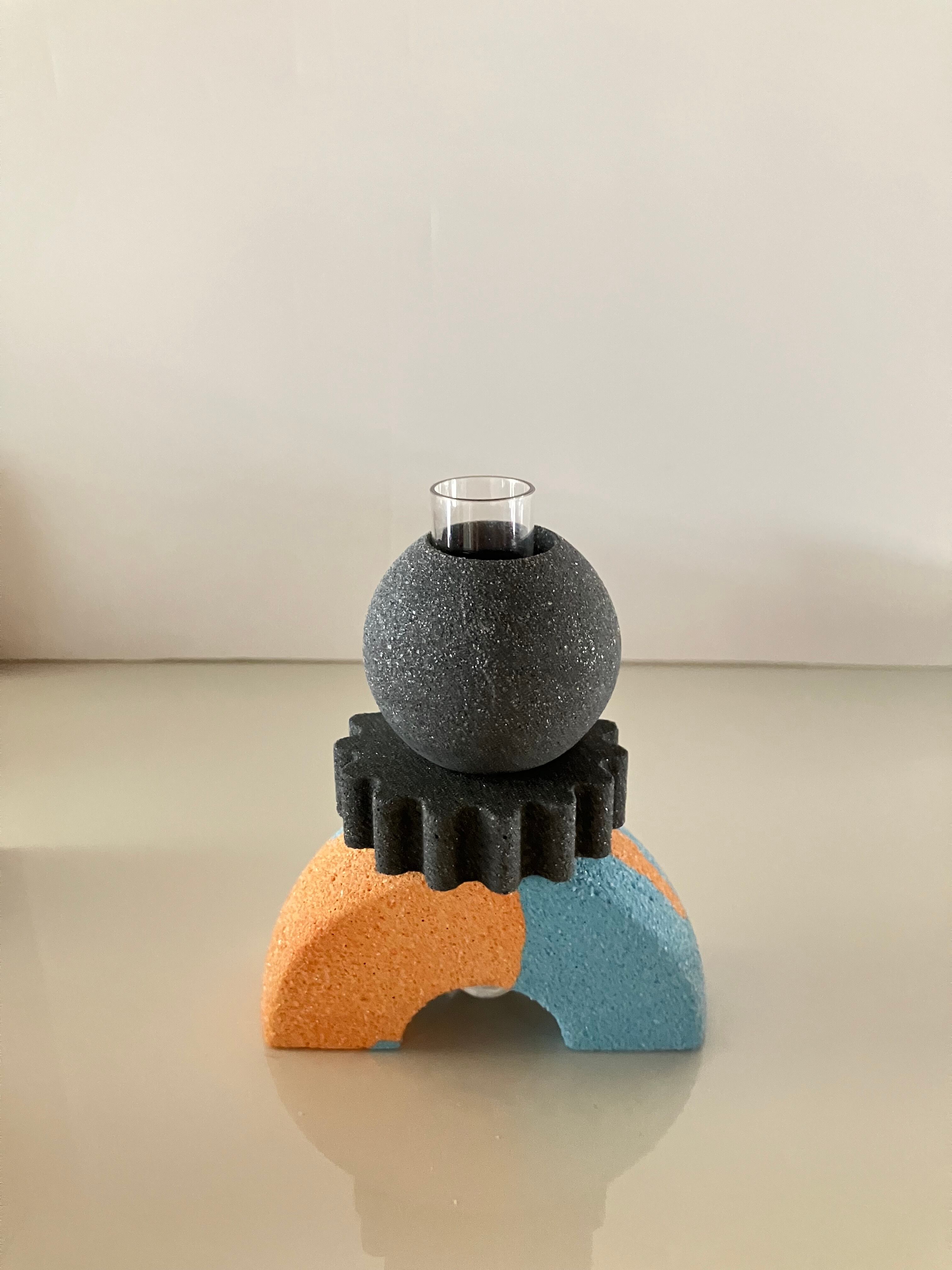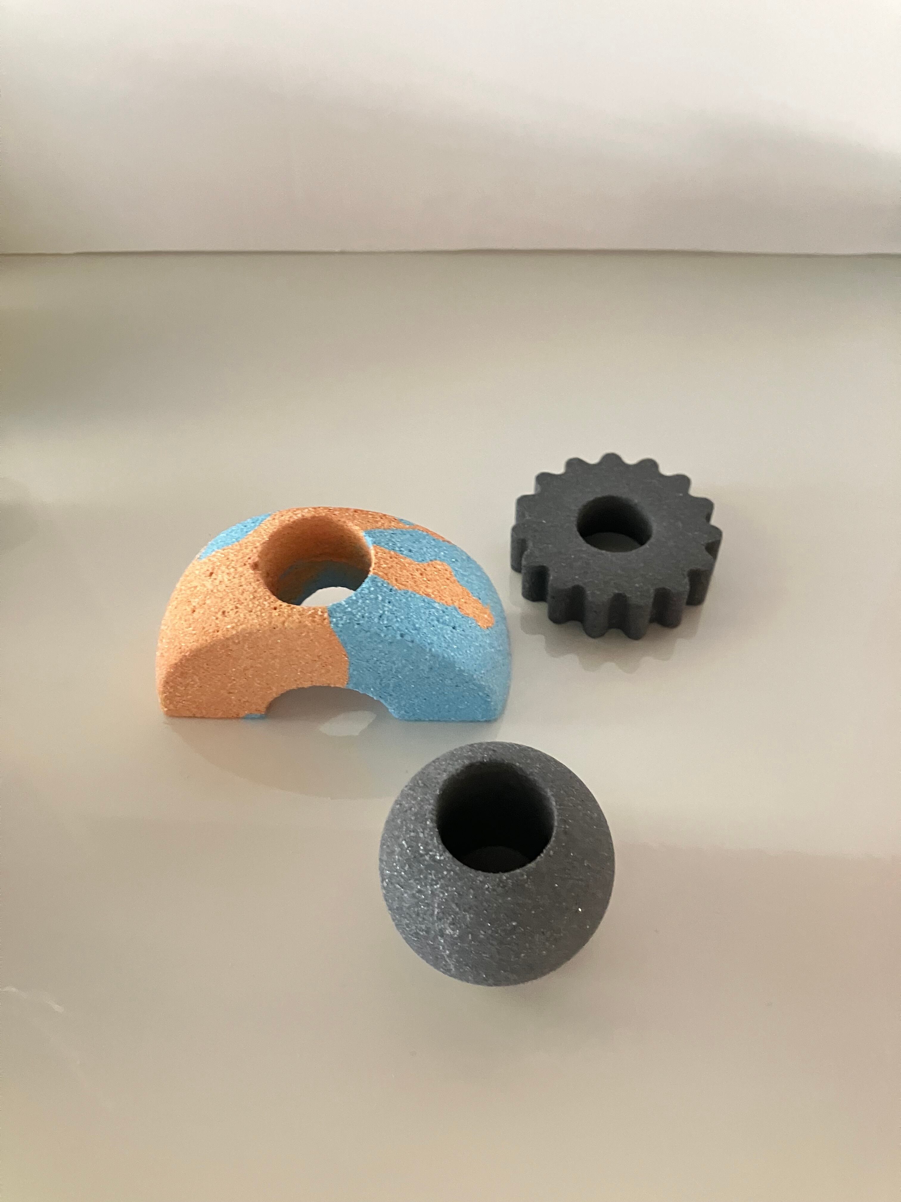 ジェスモナイトという水性樹脂製の積み木のように積み重ねて使うフラワーベースです。