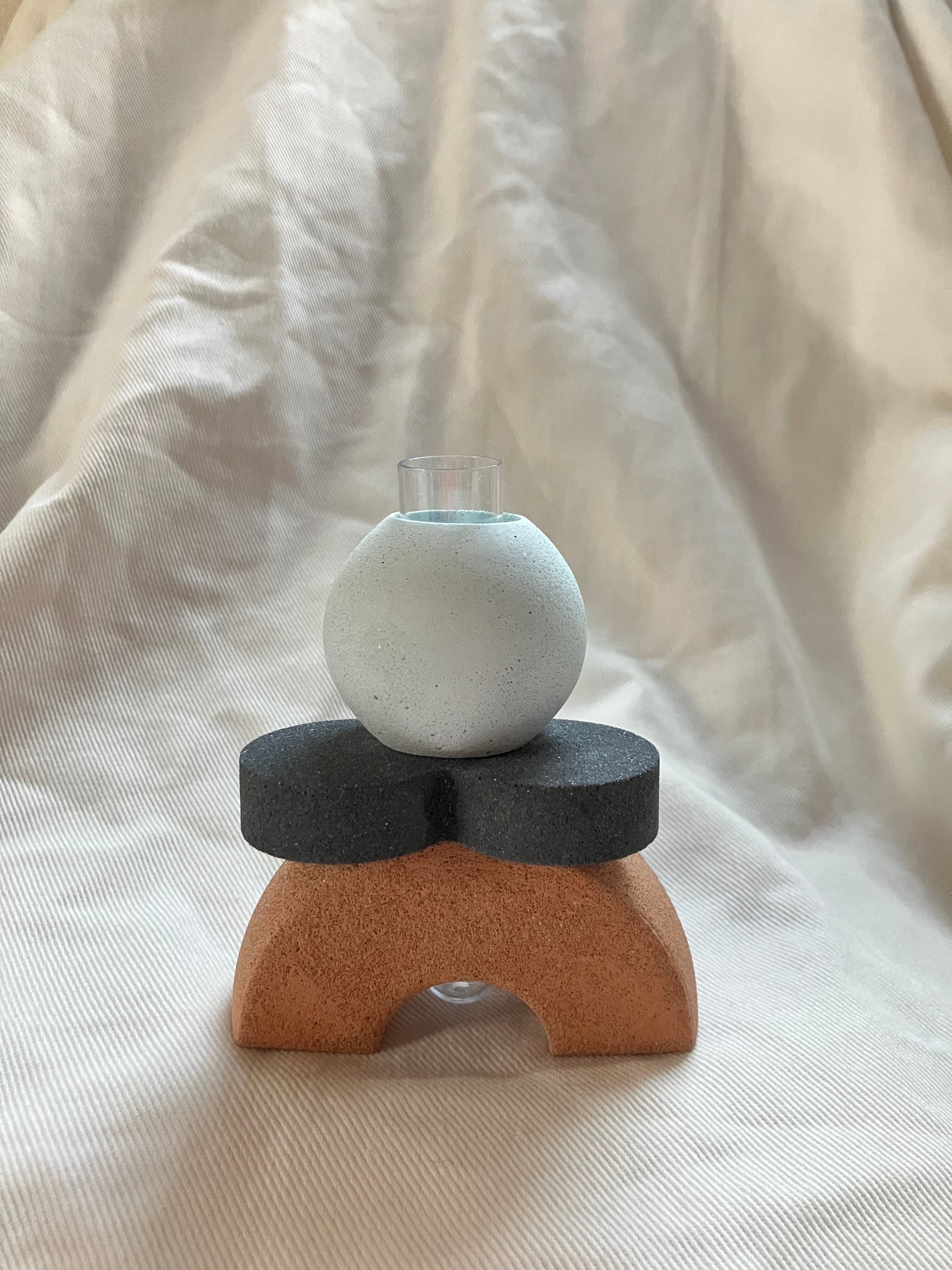 ジェスモナイトという水性樹脂製の積み木のように積み重ねて使うフラワーベースです。