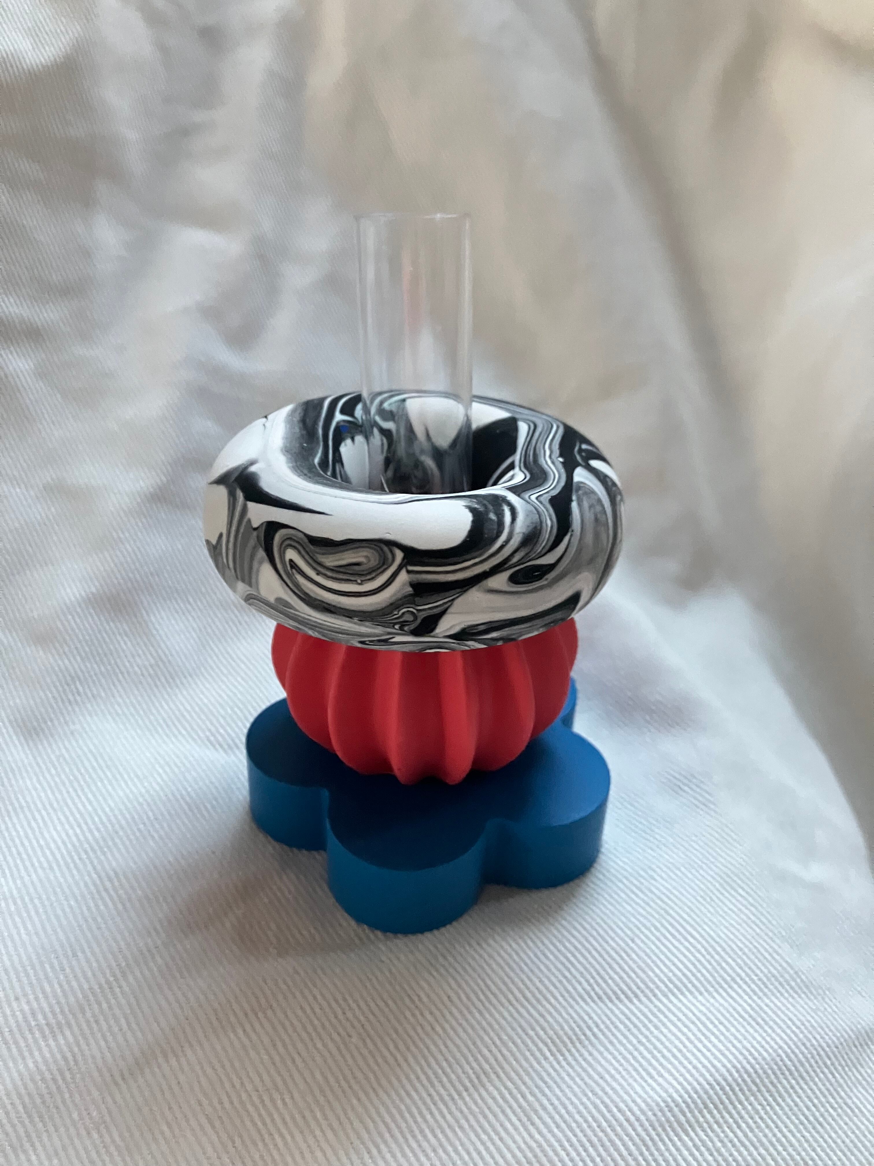 ジェスモナイトという水性樹脂製の積み木のように積み重ねて使うフラワーベースです。