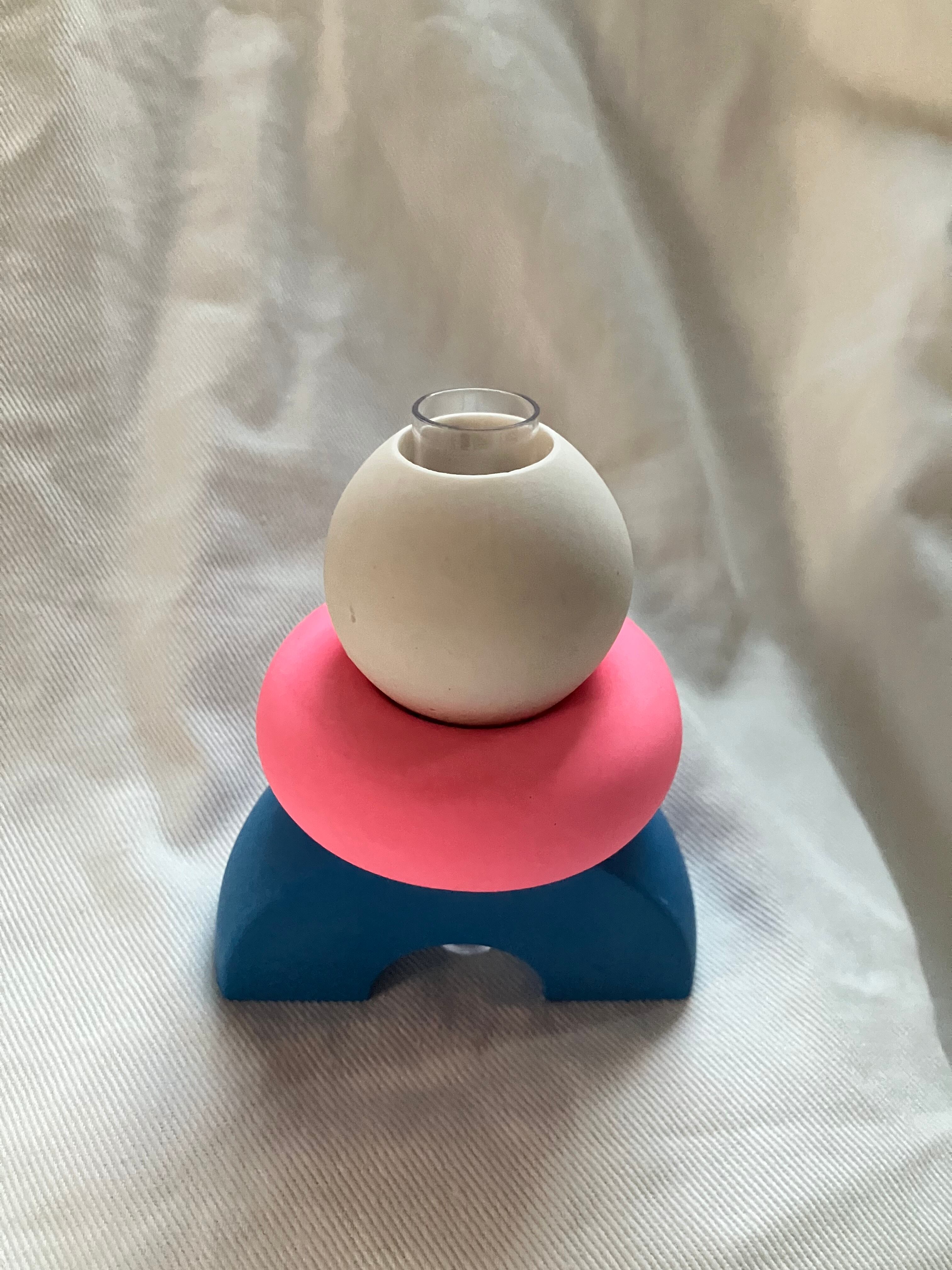 ジェスモナイトという水性樹脂製の積み木のように積み重ねて使うフラワーベースです。
