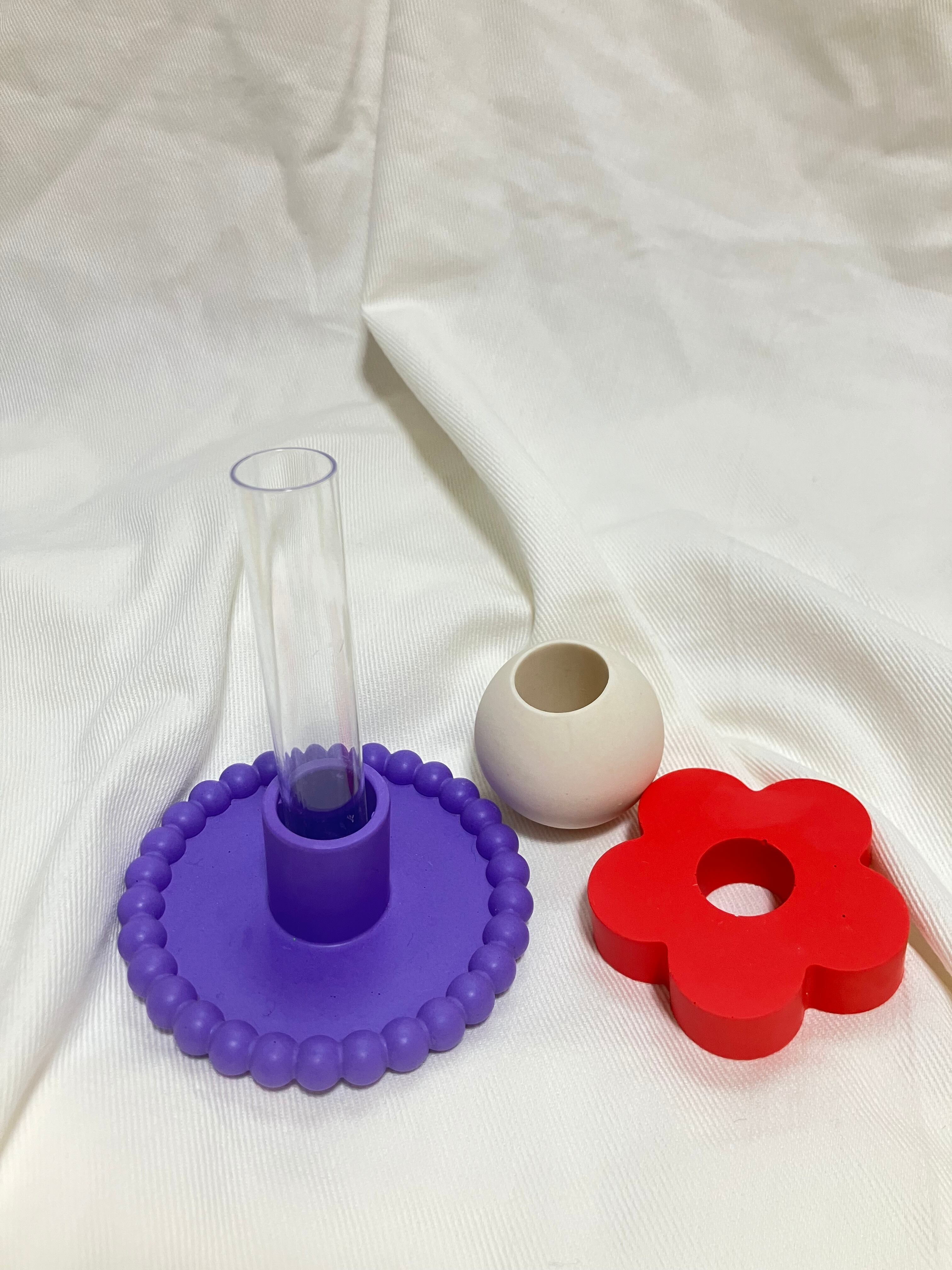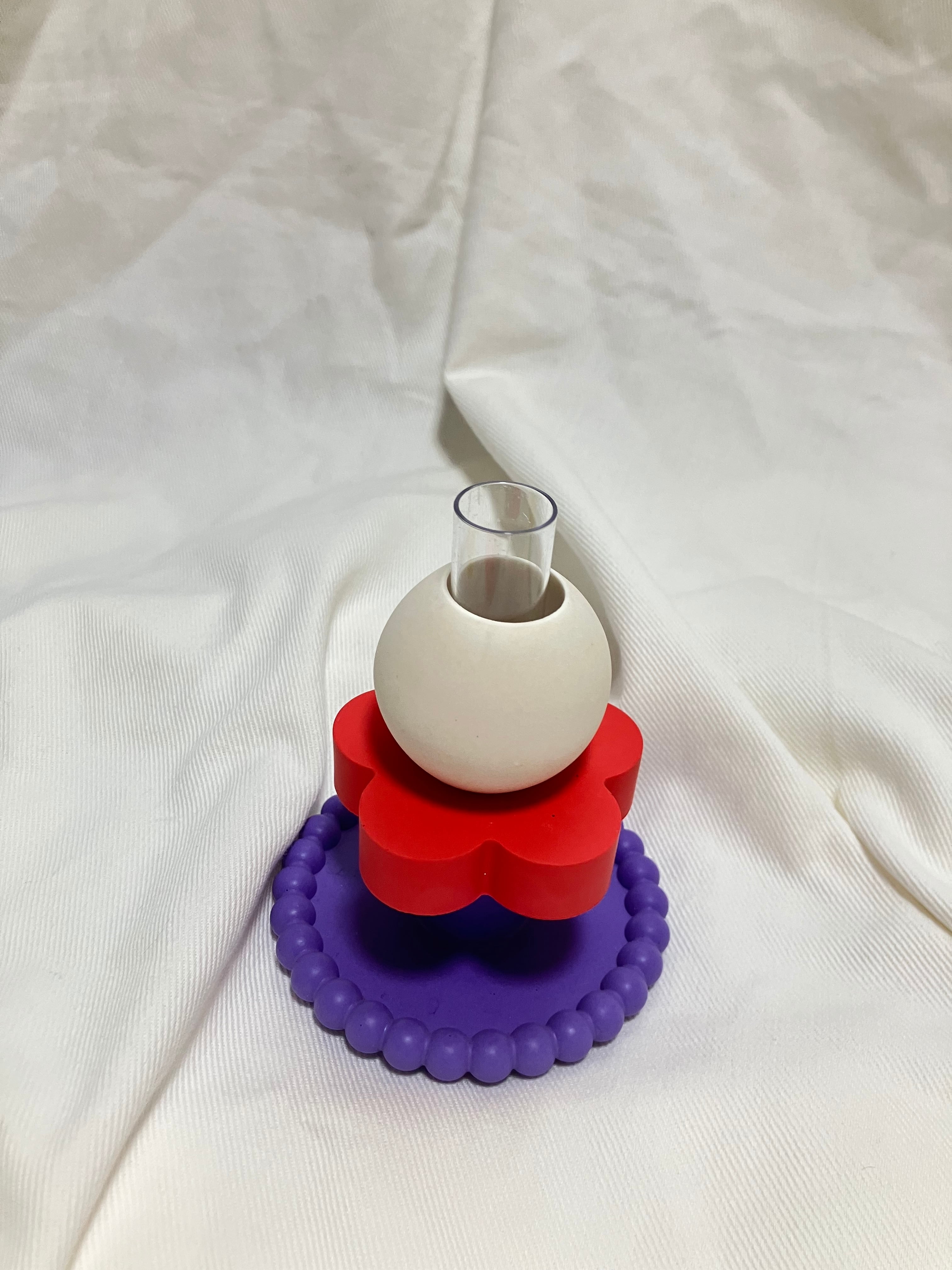 ジェスモナイトという水性樹脂製の積み木のように積み重ねて使うフラワーベースです。