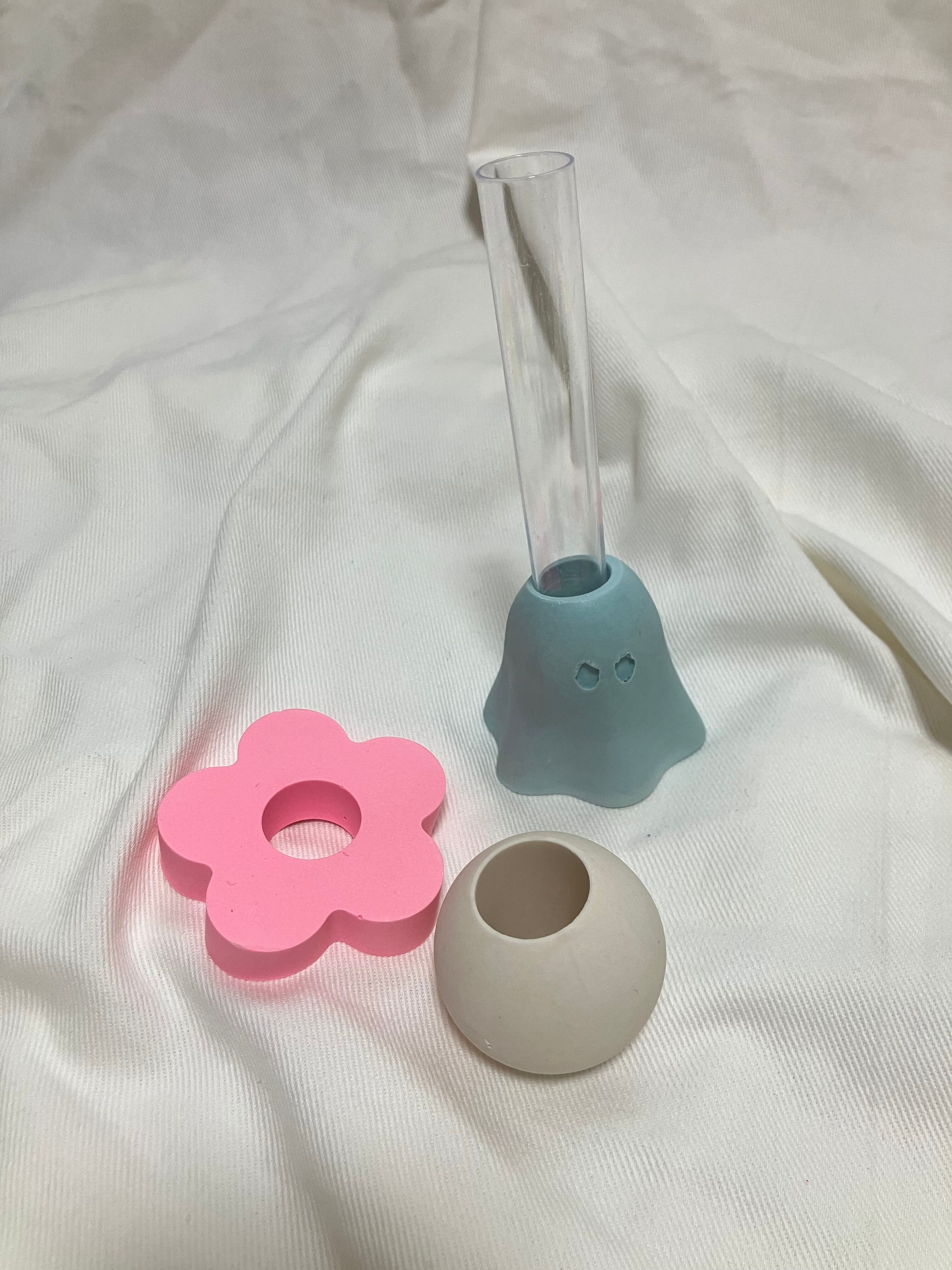 ジェスモナイトという水性樹脂製の積み木のように積み重ねて使うフラワーベースです。