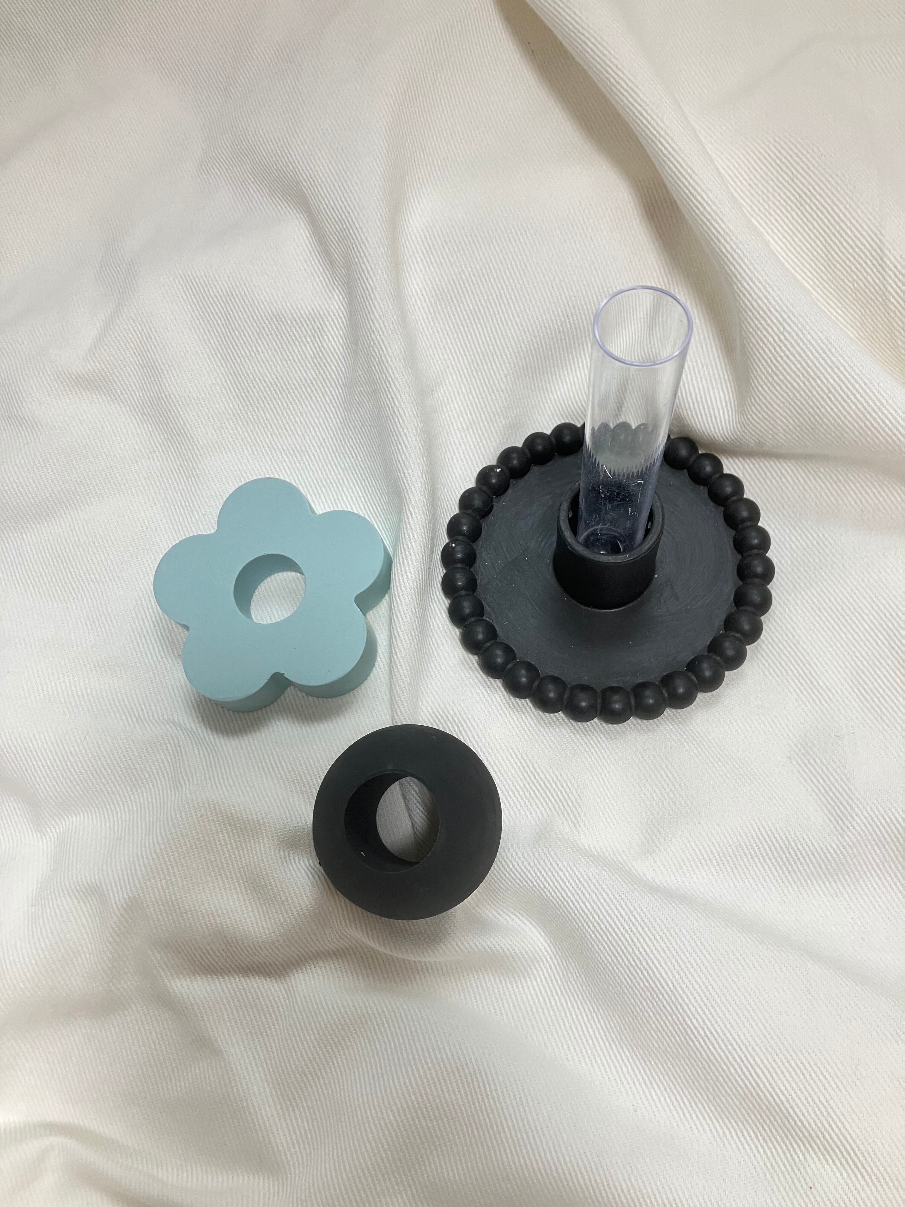 ジェスモナイトという水性樹脂製の積み木のように積み重ねて使うフラワーベースです。