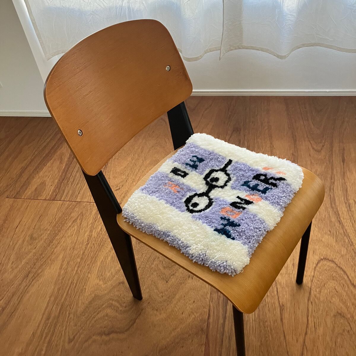 ノッティングという織り方で織ったオリジナルデザインの毛糸の椅子敷きです。